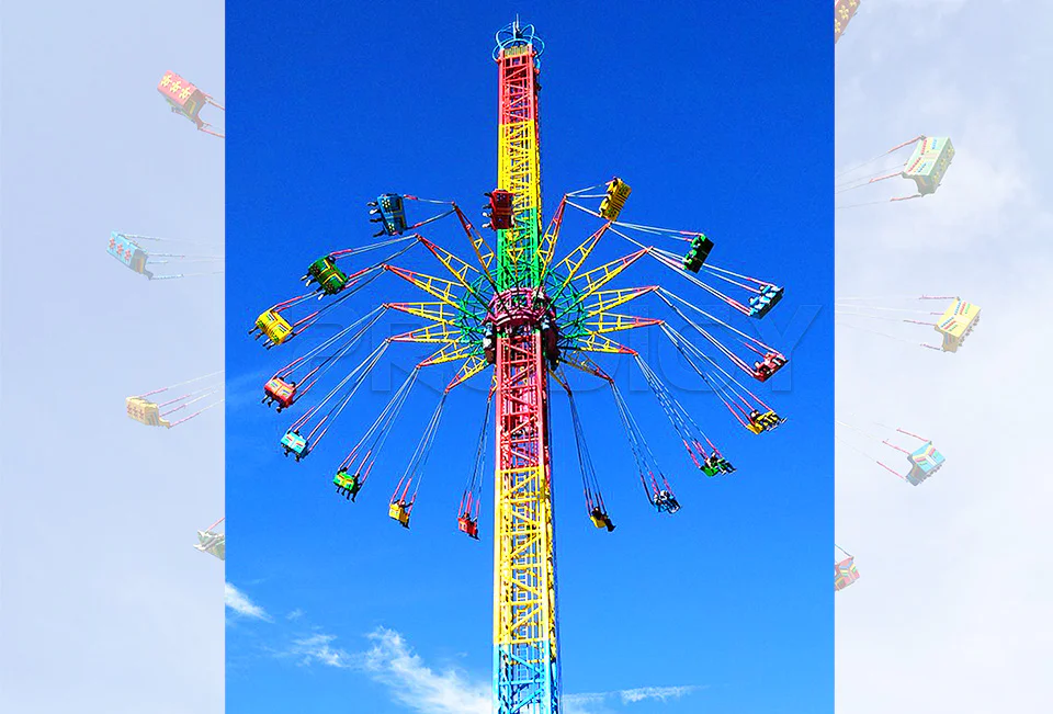 The Star Flyer Ride is a high-altitude rotating swing ride designed to deliver a unique combination of thrill and panoramic views. Riders are lifted high into the air while spinning around the tower, creating a flying sensation that is both exciting and visually stunning.