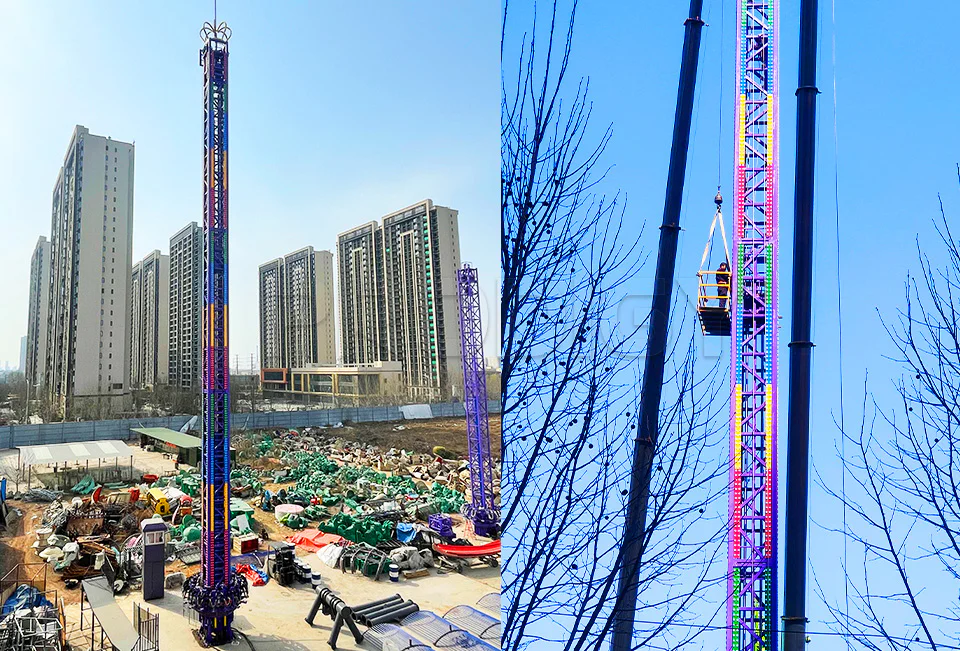 High Visual Dynamic: Unlike static towers, the spinning motion of the 38m tower creates a more dynamic and eye-catching spectacle for spectators on the ground.