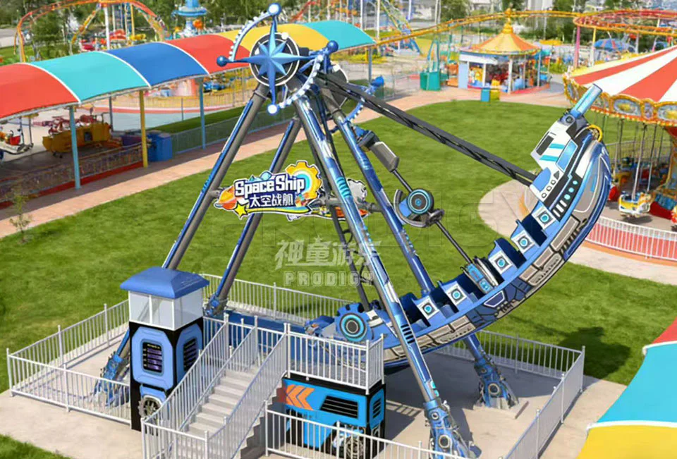 The Space Battleship is a revolutionary 24-seat pirate ship ride that breaks away from traditional wooden boat designs. By merging the classic “weightless” swinging sensation with a futuristic Space Exploration theme, this self-developed attraction creates a high-impact visual spectacle.